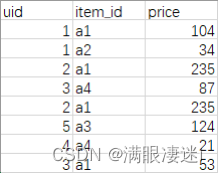 select count(uid) as uv,item_id from order group by item_id;