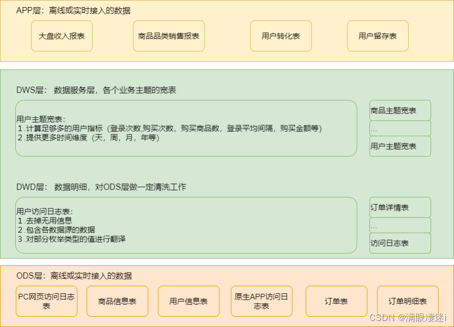 - 数仓分层的好处、通用的数据分层设计以及分层设计示例。