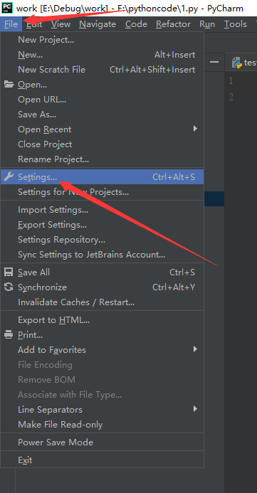 1、File->Settings
