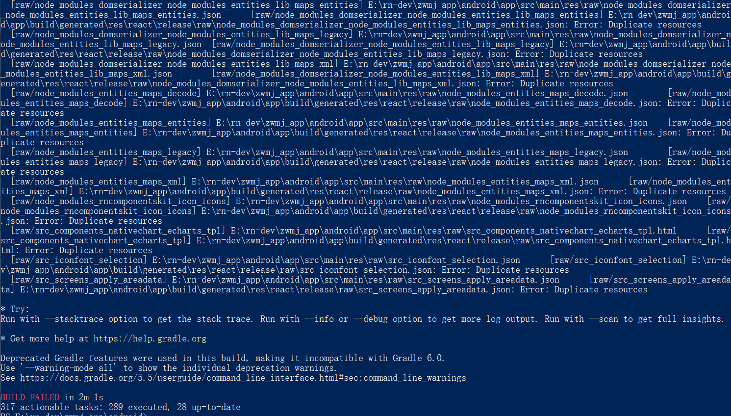 在android\app\src\main\res目录删除以下文件夹,重新运行打包命令(我这里是./gradlew assembleRelease)即能打包成功了。