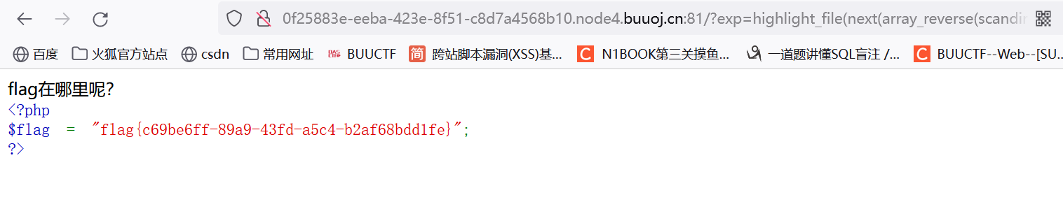 根据源码提示,使用高亮函数(highlight_file()当使用该函数时,整个文件都将被显示,包括密码和其他敏感信息!)