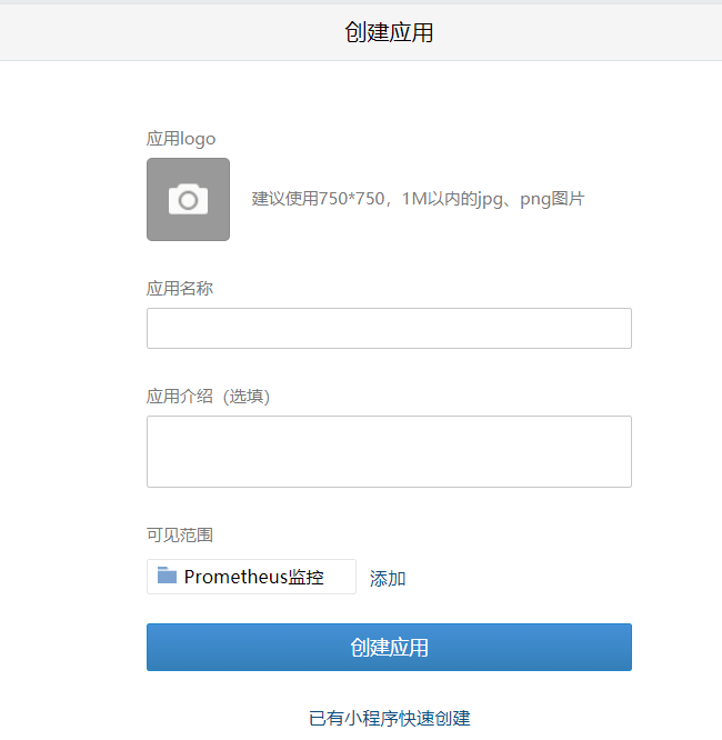 填写对应信息,配置应该logo、名称、以及应用的可见范围,如下所示: