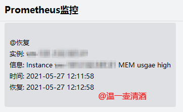 服务停止后,通过 Prometheus 消息中心推送消息,如下所示:
