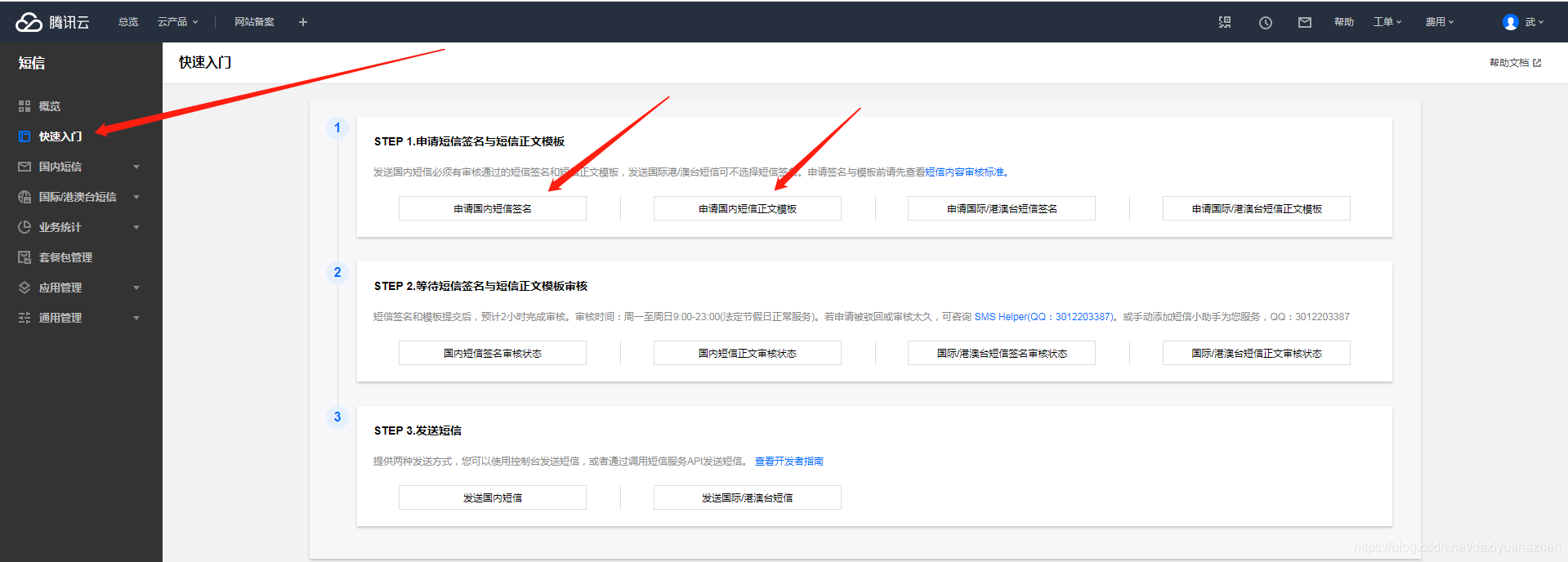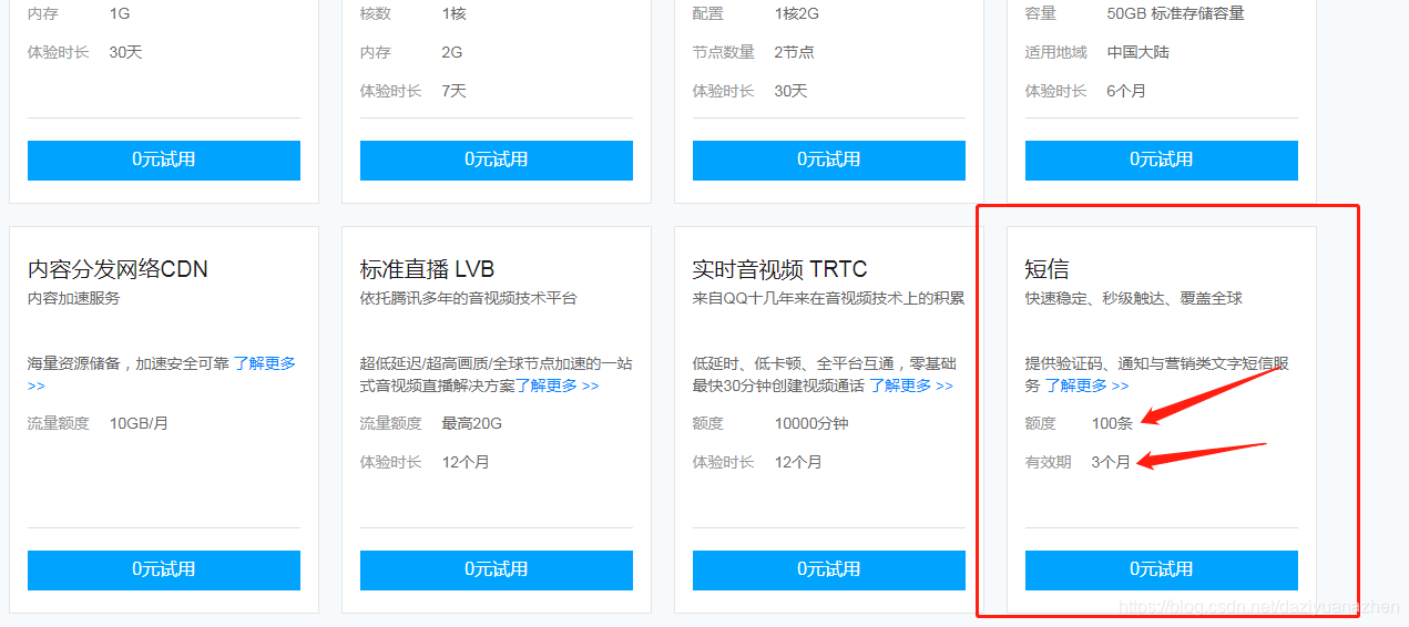 这里我使用的是腾讯云的短信接口,原因很简单,我新注册的腾讯云,有100条短信可以免费使用,哈哈。