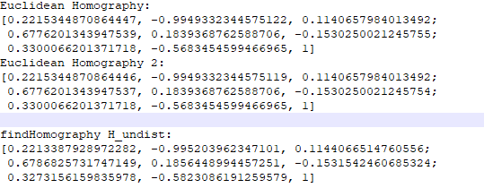 cout << "Euclidean Homography 2:\n" << homography_euclidean2 << endl << endl;