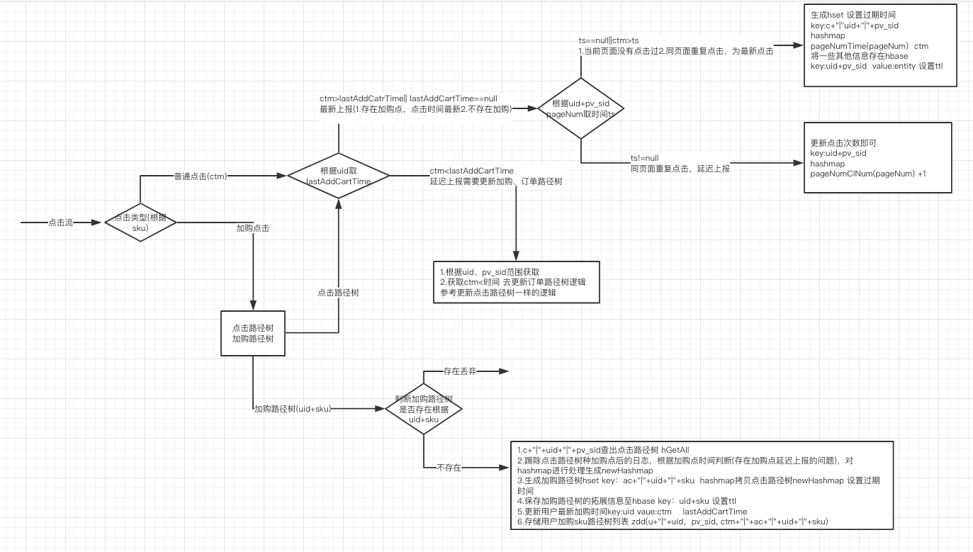 每个key一个hset保存当前uid+pv_sid 的路径信息 关键clKey: c+“|”+uid+“|”+pv_sid