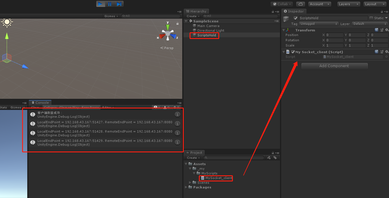 三.操作:一:完成:Unity客户端能连接到服务端