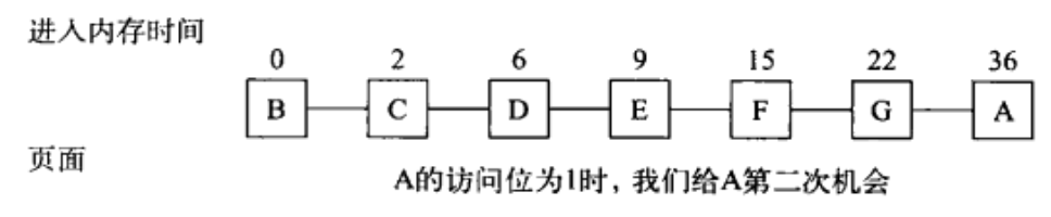 注意:该算法只扫描一遍页表,如果所有页面的访问位都是1,则表示分配给该程序的内存不够;最好的解决办法不是替换页面,而是给程序增加一个物理页面。