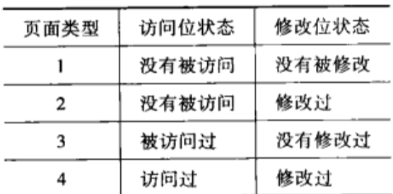 @2 根据访问位和修改位的状态来分:可以分成4种页面类型如下表: