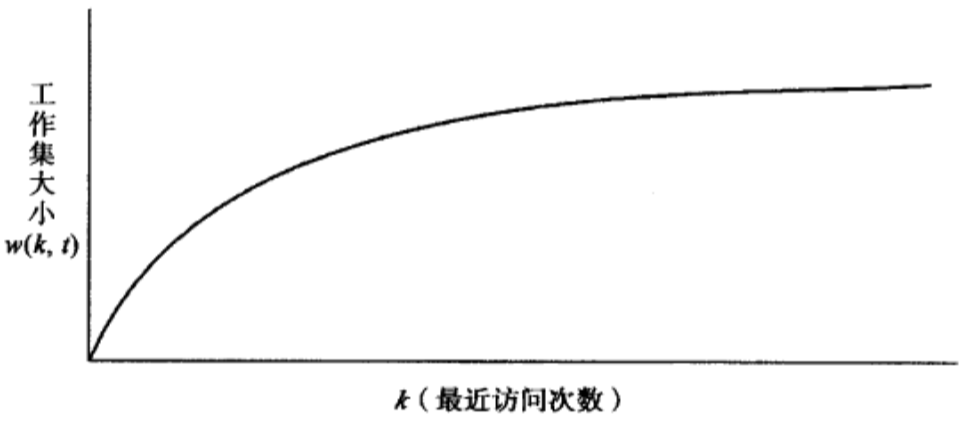 @3 实际上我们需要的是选出的页面是不太可能马上又使用的页面,这种少量的信息就是所谓的工作集信息。工作集概念来源于程序访问的时空局域性,即一段时间内程序访问的页面将局限在一组页面集合上,工作集与最近访问次数的关系如下: