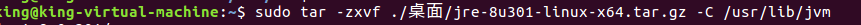 sudo tar -zxvf ~/桌面/jre-8u301-linux-x64.tar.gz -C /usr/lib/jvm