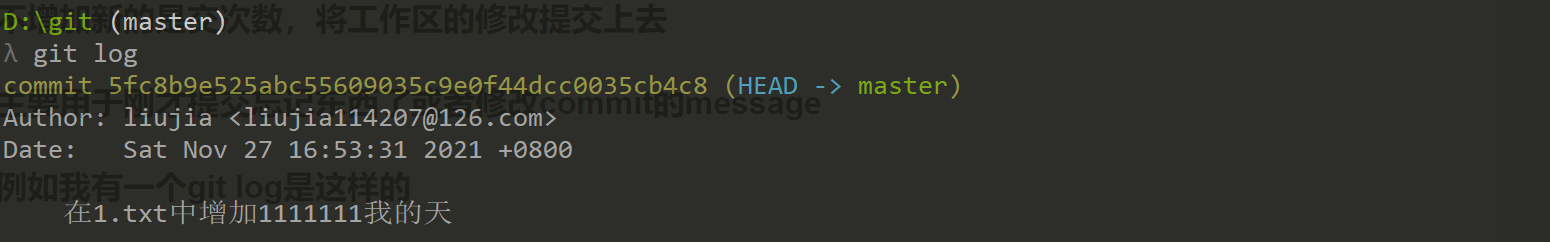 λ git commit -a -m "在1.txt增加了3333"D:\git (master)