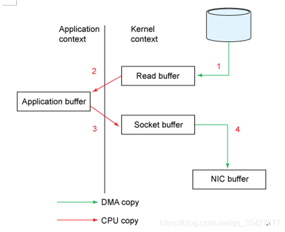 1) 先将文件内容从磁盘中拷贝到操作系统buffer