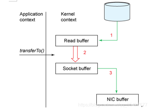 NIO技术省去了将操作系统的read buffer拷贝到程序的buffer, 以及从程序buffer拷贝到socket buffer的步骤, 直接将 read buffer 拷贝到 socket buffer. java 的 FileChannel.transferTo() 方法就是这样的实现, 这个实现是依赖于操作系统底层的sendFile()实现的.
