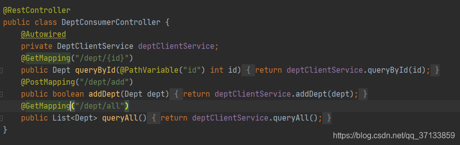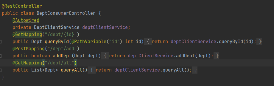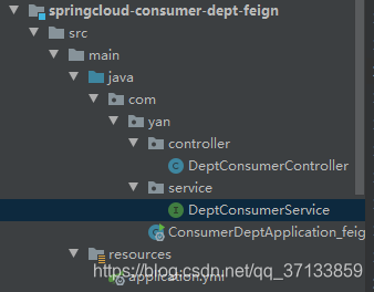 controller调用了DeptConsumerService,Service中只是接口,并没有方法的实现,但是却依然完成了查询。