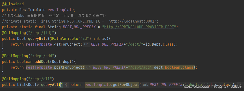 defaultZone: http://eureka7001:7001/eureka/,http://eureka7002:7002/eureka/,http://eureka7003:7003/eureka/3.service编写