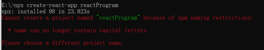 当我输入 npx create-react-app reactProgram 时给我报了一个错 name can no longer contain capital letters