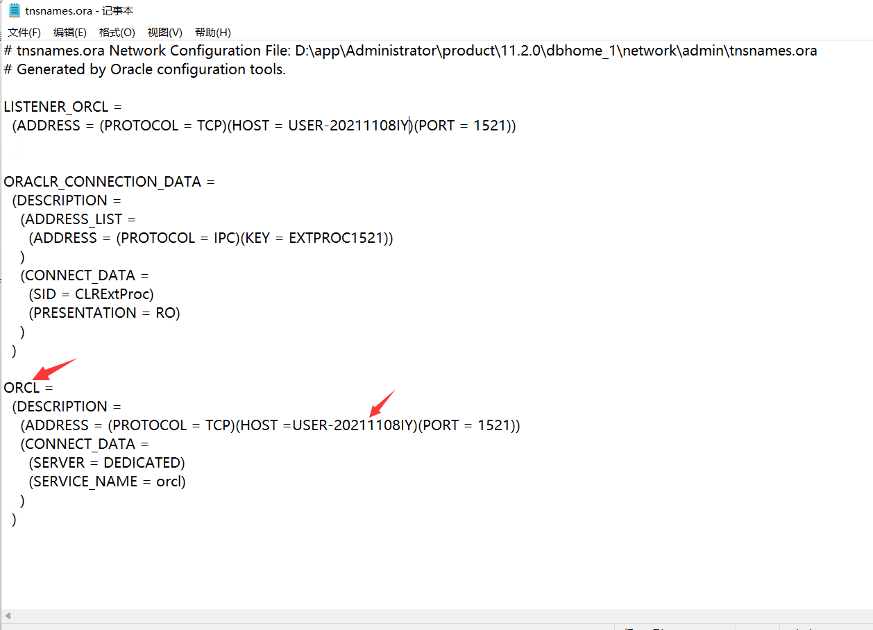 改成(以tnsname.ora为准)