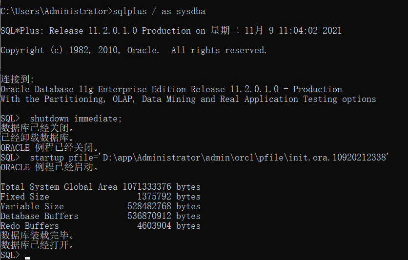 startup pfile='D:\app\Administrator\admin\orcl\pfile\init.ora.10920212338'