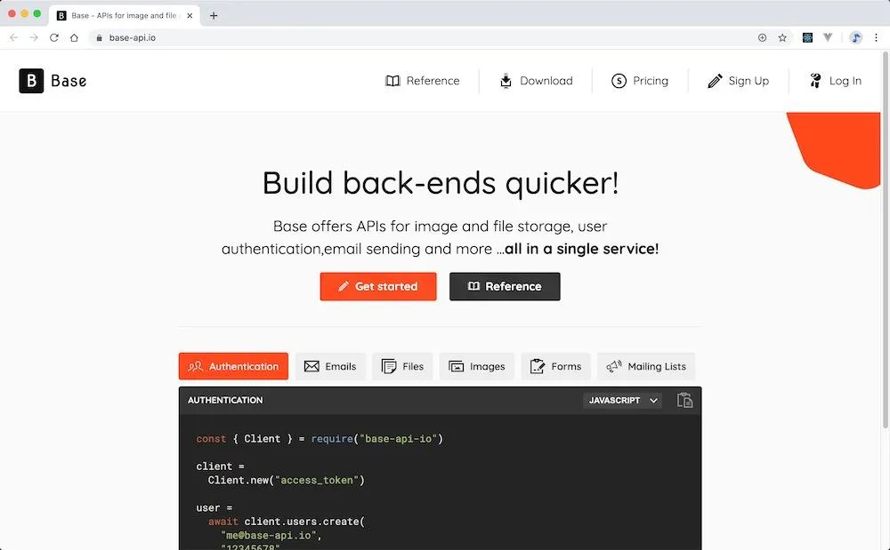 「【工具】」 4.BaseAPI:快速搭建 Web API 的云服务,包括身份验证、电子邮件发送和文件存储 「https://www.base-api.io/」