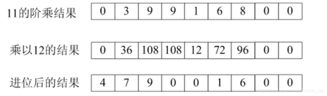 这里先使用数组存储11!的运算结果,然后对每个元素都进行*12的操作,之后再对每个元素值进行进位操作,确保每个元素的值都是个位数。具体代码如下: