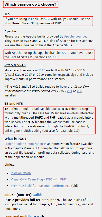 2.4 选择1. 见上面2. PHP手册给出答案If you choose to run PHP as a CGI binary, then you won’t need thread safety, because the binary is invoked at each request. For multithreaded webservers, such as IIS5 and IIS6, you should use the threaded version of PHP. 翻译: 如果选择以CGI二进制文件的形式运行PHP,那么就不需要线程安全,因为在每个请求中都会调用该二进制文件。对于多线程Web服务器,如iis5和iis6,应该使用php的线程版本