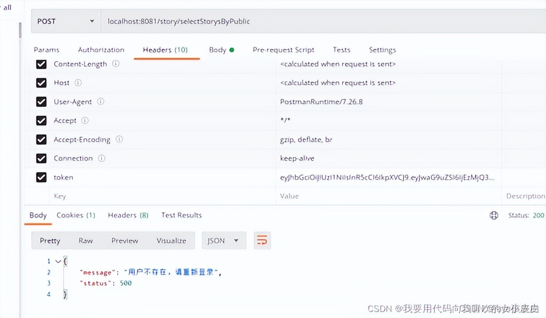 因为数据库里,我没有插入,所以不存在,我们在随便写个token