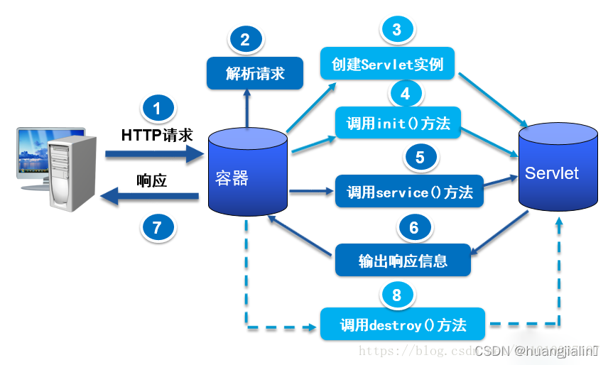 void destory():临时之前调用(1次)【总结】servlet由我们编写,但对象由服务器来创建,并且由服务器来调用相应的方法。