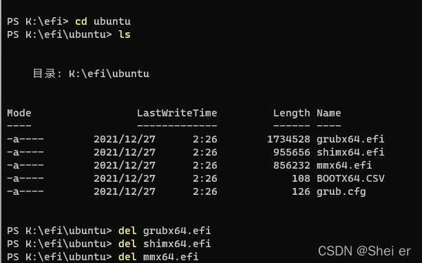 进入ubuntu,逐个删除.efi文件