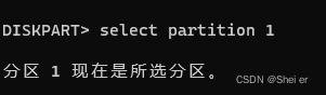 select partition 1 选择分区1