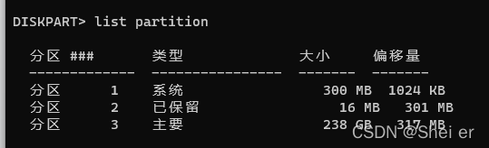 list partition 查看分区