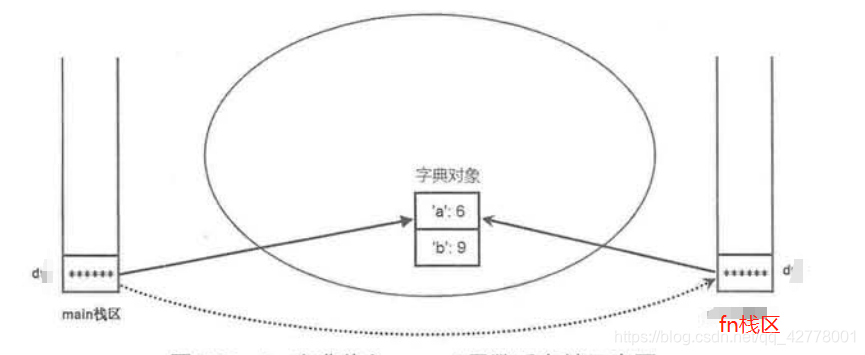 其实,d变量作为参数传入到fn函数,同样采用值传递方式,但是d变量只是一个引用变量(也就是一个指针),它保存了字典对象的地址,当把d变量赋值给fn参数后,也就是让fn参数也保存这个地址(指向这个地址),通俗点说,d变量和函数参数的d变量(副本)同时指向了同一个地址,系统复制的是d变量,并不是赋值字典本身。所以字典本身发生改变,两个变量也跟着改变了。(与js中的引用值一样)