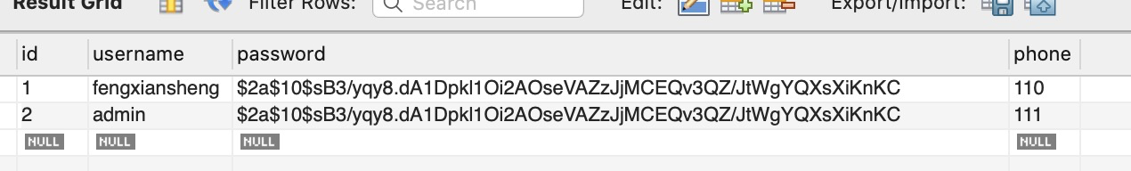 }注意,这里需要修改数据库的user表,增加 phone 字段