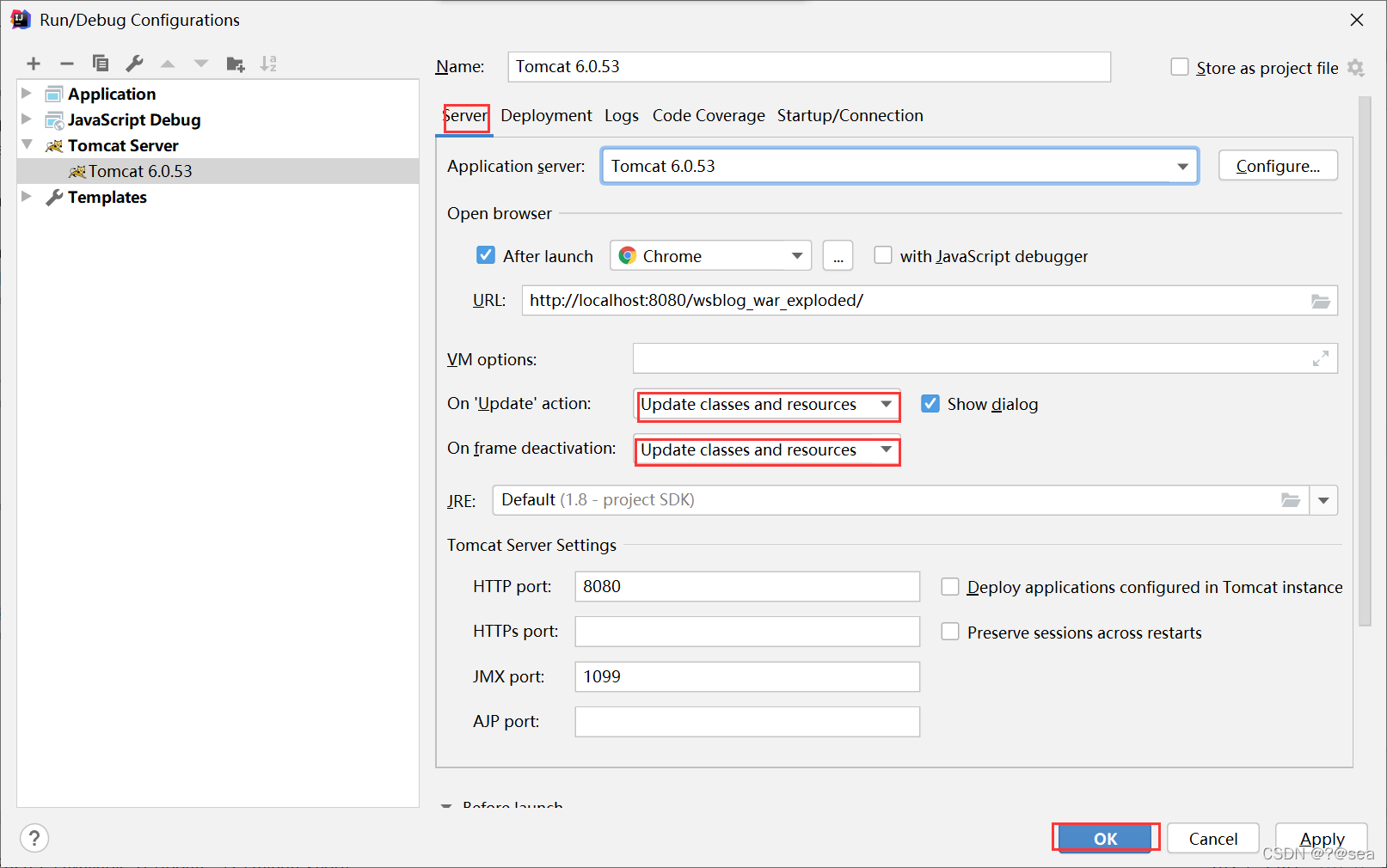 选择Server——>按照下图都选择成Update classes and resources——>点击?