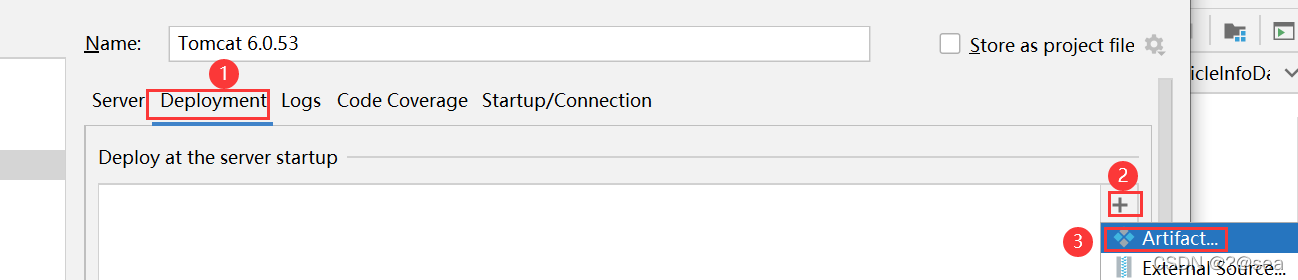 点击tomcat下拉箭头——>点击Edit——>点击Deployment——>点击+号——>点击Artifact——>选择war exploded——>点击OK