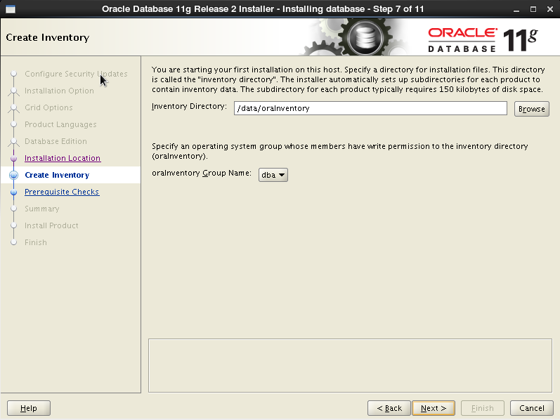 Changing groupname of /data/oraInventory to dba.