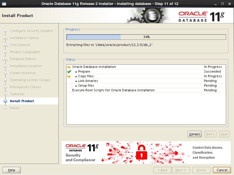 Running Oracle 11g root.sh script...