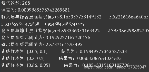 print("训练样本为:",testData[i]," 结果为:",end="")