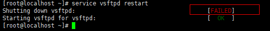 图片中的FAILED表示关闭失败,因为vsftpd之前还没开启过,所以关闭失败,不过这不影响。