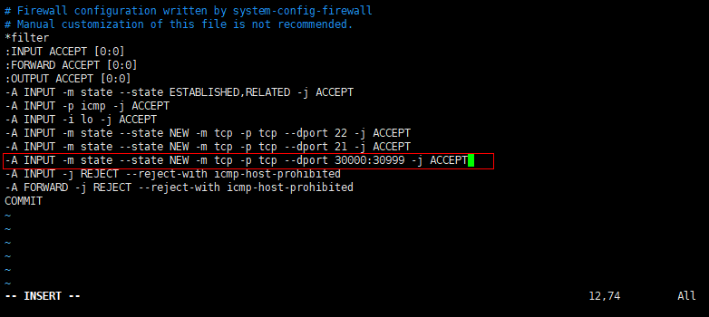 命令:vim /etc/sysconfig/iptables