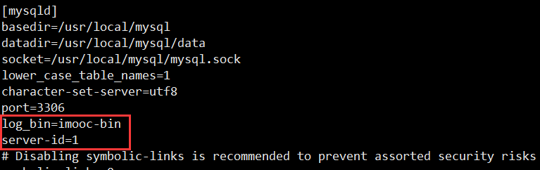(4)mysql主从机配置文件写错:查看主从机配置文件 "vi /etc/my.cnf",主机配置: