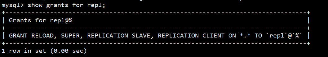 grant REPLICATION SLAVE ON *.* TO repl;