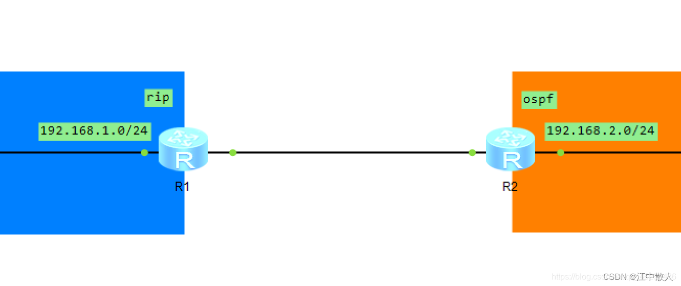 - 配置对方的路由协议(如:R1对面是用的OSPF协议,那么R1就用OSPF协议宣告相邻网段)