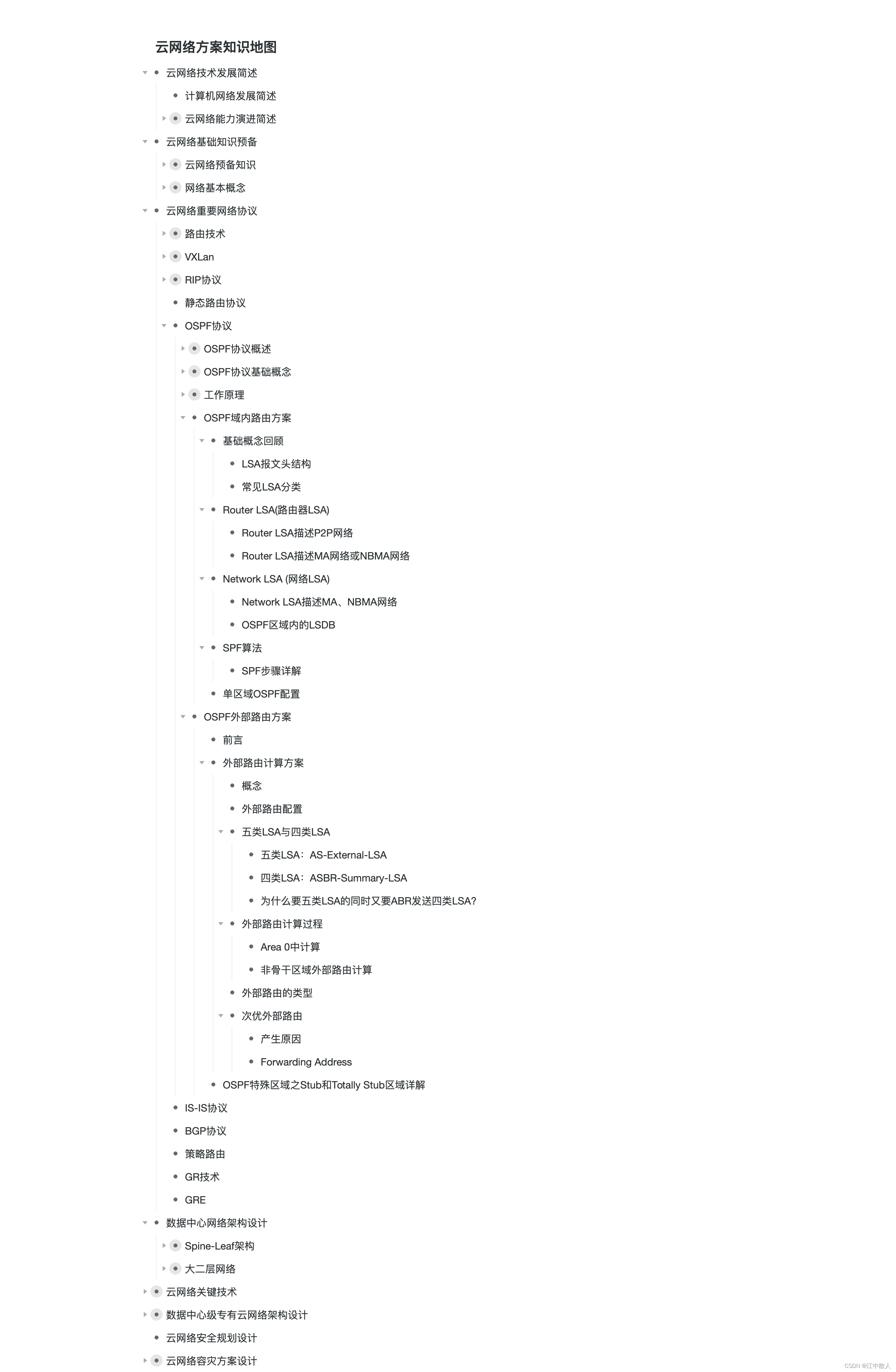 - 用来通告到达OSPF自治系统外部的目的地或者OSPF自治系统外部的缺省路由的LSA。自治系统外部LSA是链路状态数据库中唯一不与具体的区域相关联的LSA通告。外部LSA通告将在整个自治系统中进行泛洪扩散。