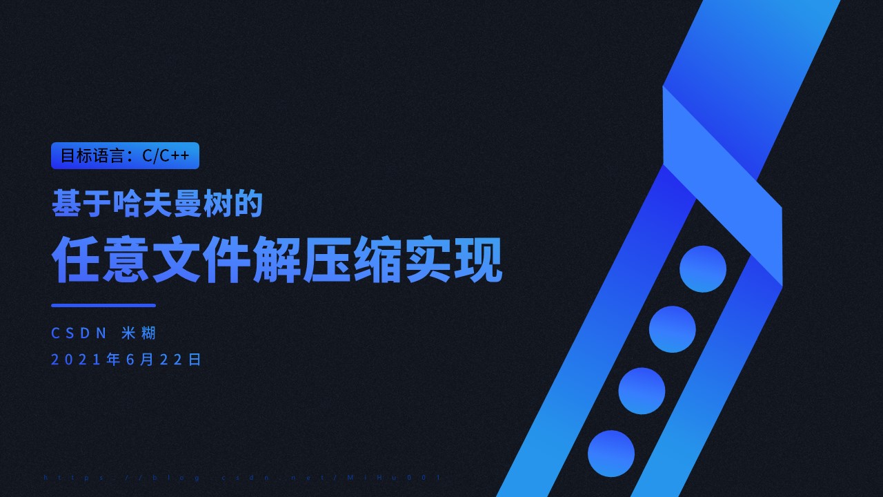 哈夫曼编码是一种基于二叉树生成的不等长编码,通过赋予高频次字符更短的编码来减小文件体积。本例中,将详细地讲解如何使用C++语言完成哈夫曼编码的压缩与解压,共包括以下六个部分: