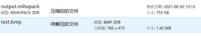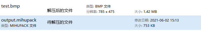 压缩一张BMP图片时达到了53%的压缩效率。对于其他文件基本能稳定在50%-90%之间,某些特殊文件压缩后没有变化。