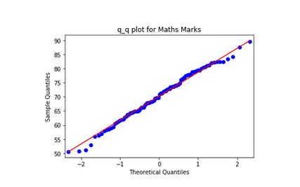 对于数学分数,值基本沿着直线表示它们是正态分布的。另一方面,对于英文分数,正态分布中较大的值比预期的大,而正态分布中较小的值比预期的小,在右偏分布中也是如此。
