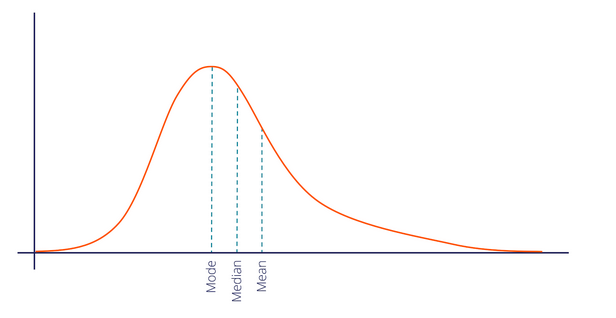 在正偏态分布中,我们将测量的中心趋势之间的一般关系表示为: