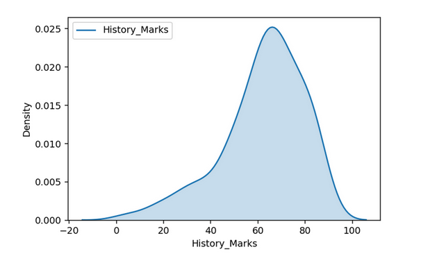 当数据点在分布的右侧聚集时,则尾部在左侧较长,这是左偏分布的性质。尾部在负方向较长,所以我们也叫它负偏态分布。